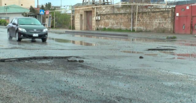 Yolun aşınması nəticəsində yaranan böyük çuxurlar avtomobillərin hərəkətini çətinləşdirir…