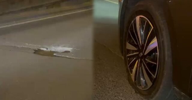 Prospektdəki bu çuxura düşən maşınların təkəri partlayır – Video