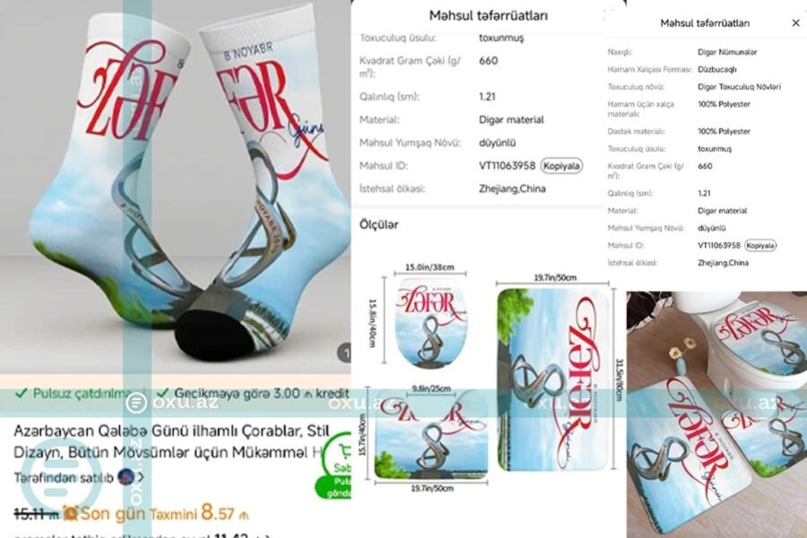 Belə ki, “Temu” onlayn alış-veriş platformasında Azərbaycan xalqı üçün müqəddəs sayılan 8 Noyabr – Zəfər Günü yazıları və Zəfər abidəsini əks etdirən simvolların hamam aksesuarları, unitaz üçün nəzərdə tutulan ayaqaltıları və corablar üzərində istifadəsi cəmiyyət tərəfindən milli dəyərlərə həqarət kimi dəyərləndirilir.