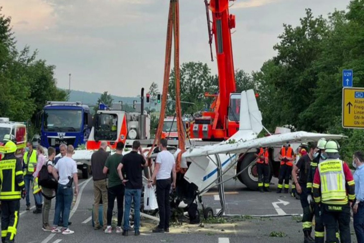 Almaniyanın Manhaym şəhərində kiçik mühərrikli təyyarə küçəyə eniş edib.