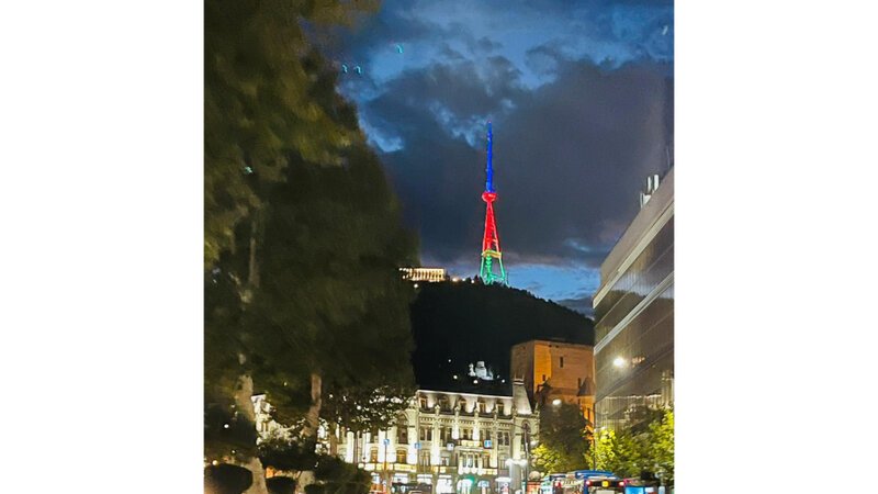 Gürcüstanın paytaxtının simvollarından biri olan televiziya qülləsi Azərbaycan Bayrağının rəngləri ilə proyeksiya olunub.