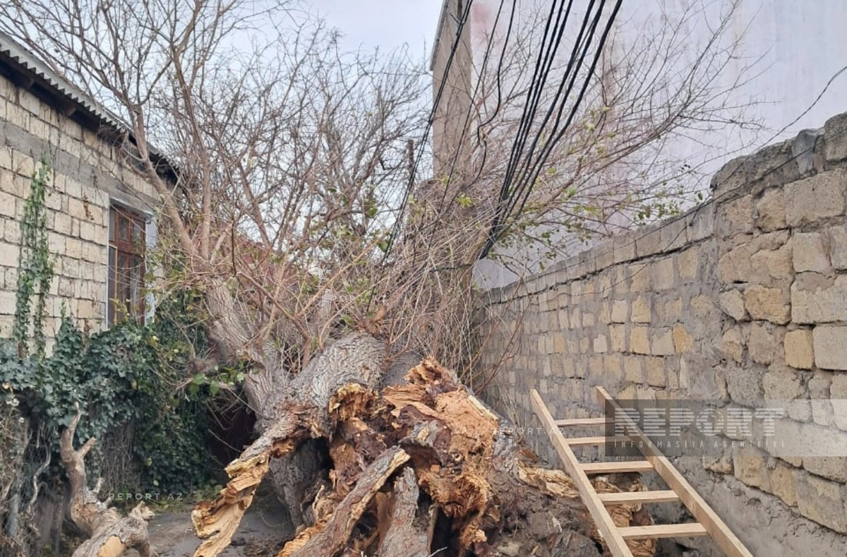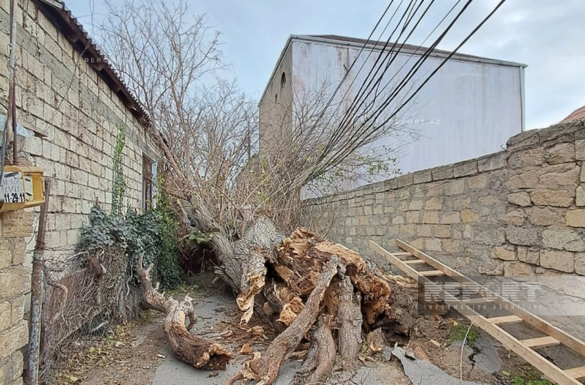 Qırılmış ağac küçədə sakinlərin hərəkətinə mane olub. Hadisə nəticəsində ətrafda olan evlər işıqsız qalıb.