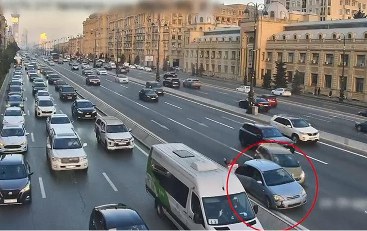 Nəqliyyatı İntellektual İdarəetmə Mərkəzinin müşahidə kamerası vasitəsilə qeydə alınan bu hadisə isə paytaxtın Nərimanov rayonu, Heydər Əliyev prospektində baş verib. Əsas yolda hərəkətdə olan nəqliyyat vasitəsi sərnişin düşürmək məqsədilə yolun hərəkət hissəsində dayanan avtomobillə toqquşub. Qəza siqnalının yandırılması ilə təhlükənin aradan qalxdığını düşünən sürücü çoxzolaqlı yolda sərnişini düşürməklə həm özünü, həm də digər şəxsi təhlükə qarşısında qoyub. Hadisə nəticəsində mərkəz istiqamətində sıxlıq da yaranıb.