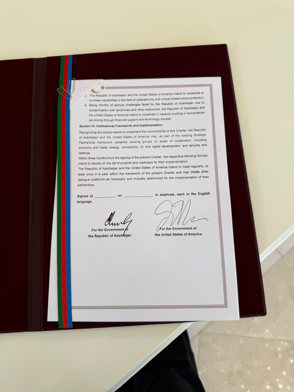 Azərbaycan Respublikası Hökuməti ilə Amerika Birləşmiş Ştatları Hökuməti arasında Strateji Tərəfdaşlıq haqqında Xartiyanın mətni açıqlanıb.