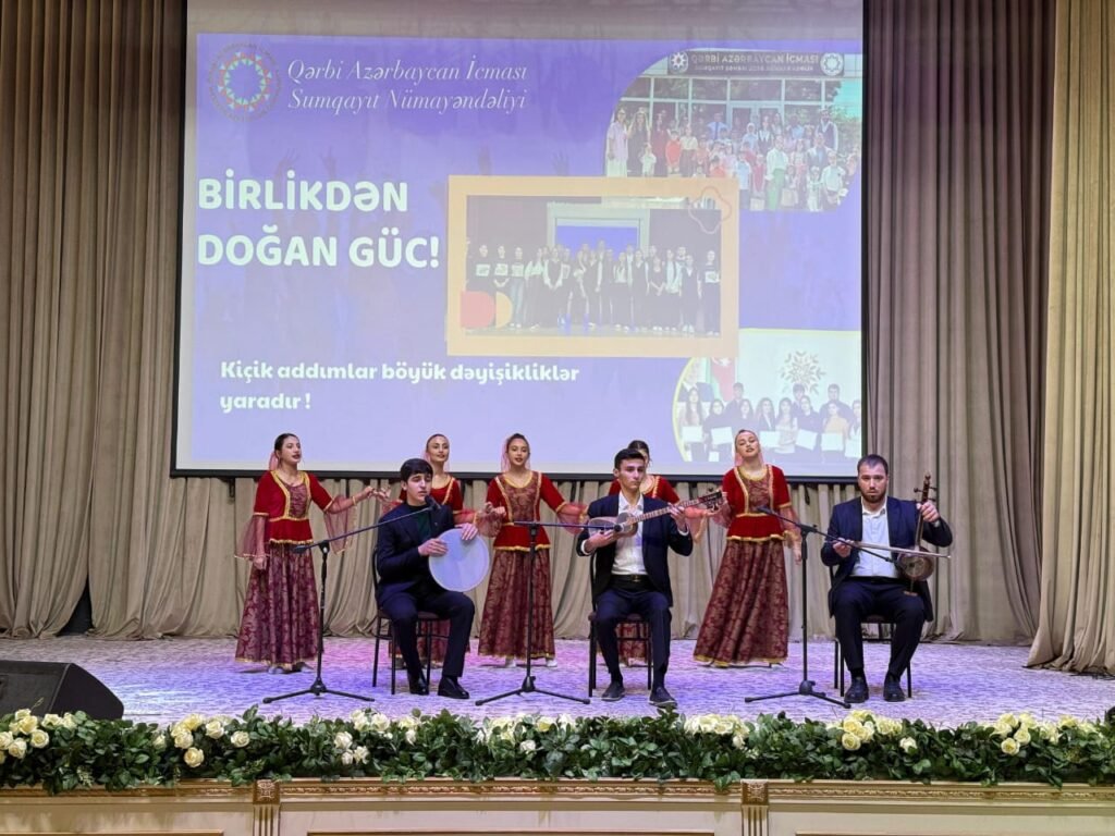 Sumqayıt Muğam Mərkəzində Qərbi Azərbaycan İcmasının təşkilatçılığı ilə “Birlikdən doğan güc– Qərbi Azərbaycana gedən yol” adlı tədbir keçirilib. Tədbir Azərbaycan gəncliyinin könüllülük fəaliyyətinə, milli birliyə, həmrəyliyə və Qərbi Azərbaycana qayıdış ideyasına həsr olunub.