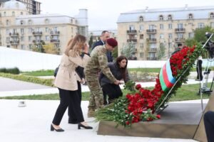 Daha sonra Medianın İnkişafı Agentliyinin kollektivi Zəfər parkına gəlib, Zəfər abidəsinin önünə gül dəstələri düzüblər.
