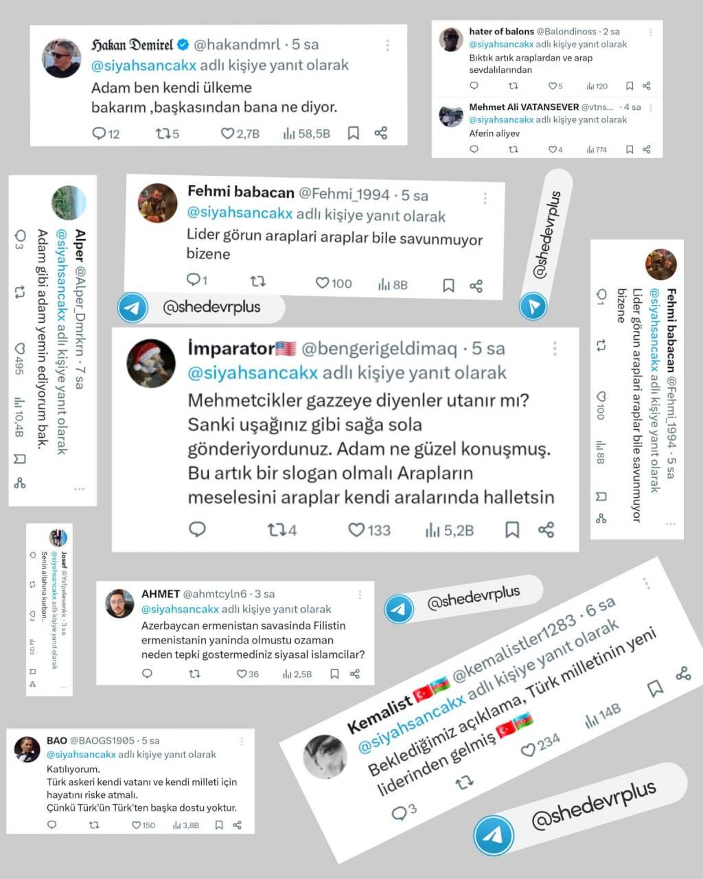 Türkiyənin 3 milyona yaxın izləyicisi olan “Onedio.com” və geniş auditoriyaya malik bir sıra digər sosial media platformaları Prezident İlham Əliyevin Qəzzaya əsgər göndərməyəcəyi haqda fikirlərini paylaşıb. Paylaşımlara çoxsaylı reaksiya verilib və mütləq çoxluq Azərbaycan Prezidentinin mövqeyini təqdir edir, hətta ona heyran olduqlarını bildirirlər.