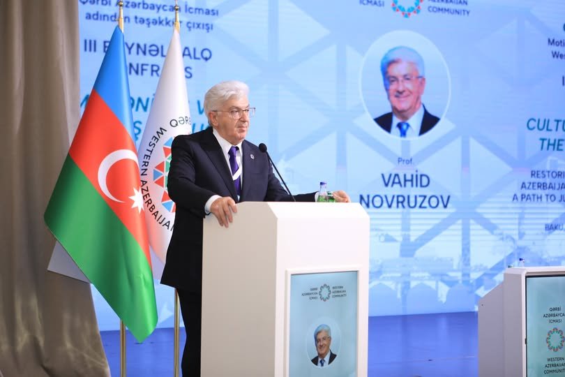“Mədəni irs və qayıdış hüququ: Ermənistandan didərgin salınmış Azərbaycanlıların mədəni irsinin bərpası – ədalətə, barışığa və sülhə aparan yol kimi” mövzusunda III Beynəlxalq Konfransın bağlanış sessiyasında Qərbi Azərbaycan İcması adından Nəzarət-Təftiş Komissiyasının sədri, professor Vahid Novruzov təşəkkür məktubunu iştirakçılara təqdim edib.
